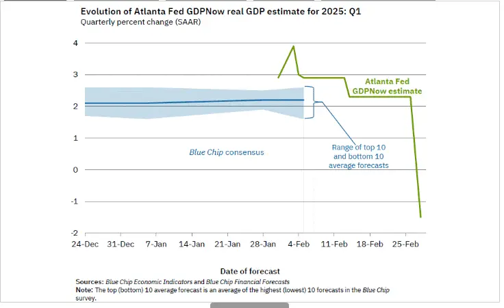 Citing data from the Atlanta Federal Reserve, Henrik Zeberg tells his 175,200 followers on the social media platform X that the US GDP is projected to contract by 1.5% in Q1 of 2025.
