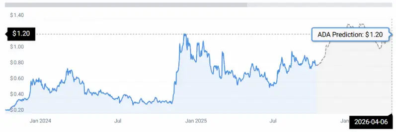 “According to our current Cardano price prediction, the price of Cardano is predicted to rise by 48.98% and reach $1.21 by January 8, 2026. Per our technical indicators, the current sentiment is bearish, while the Fear & Greed Index is showing 70 (greed). Cardano recorded 16/30 (53%) green days with 5.06% price volatility over the last 30 days.”
