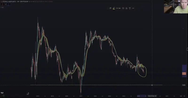 In a new strategy session, Cowen tells his 900,000 YouTube subscribers that the TOTAL 3 chart, which tracks the market cap of all digital assets excluding Bitcoin, Ethereum (ETH) and stablecoins, remains in a downtrend against the flagship crypto asset and has yet to find a market bottom.