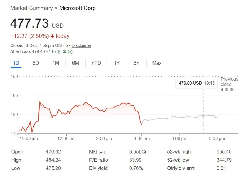 Microsoft (NASDAQ: MSFT) stock is on a downward trend in December. MSFT has shed nearly 8% in a month and is heading backward in the charts. Not just Microsoft, several companies such as Nvidia, Amazon, and AMD, among others, are also experiencing a dip. All these firms that have mostly invested in AI have seen a major price decline this quarter.