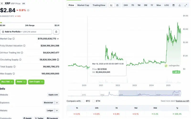 Ripple’s XRP token has had quite a ride over the last year. The asset struggled to gain momentum after the SEC sued Ripple in 2020 for allegedly selling unregistered securities. According to CoinGecko’s data, XRP’s price was hovering at around $0.1 in March 2020. Since its 2020 lows, XRP’s price has come quite a long way. Let’s discuss what a $1000 XRP investment in September 2020 is worth in 2025.